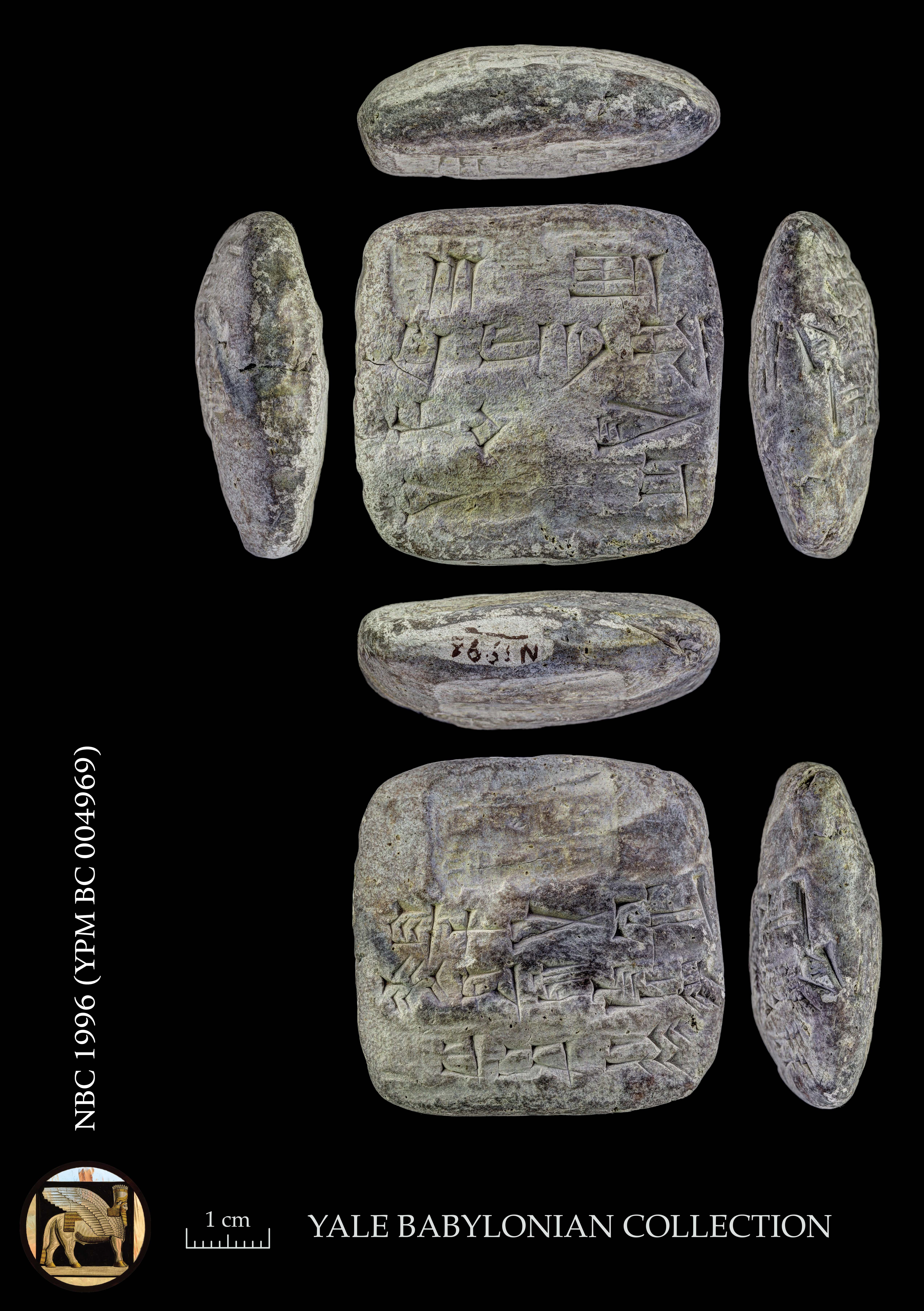 | Keiser, C.E. | 1971 | BIN 3 449 | Edition (H) | | Sigrist, M. | 2001 | CBCY 3, NBC 01996 | Cataloguing | | ––– | 2018-24 | Yale BC 004969 | Resource (P) | | ––– | 2021 | ePSD P106256 | Resource (T) | | ––– | 2024 | eBL NBC.1996 | Resource | | ––– | ––– | CDLI P106256 | Resource | | Tsouparopoulou, C. | 2015 | HSAO 16, no. 445b | Seal (T) |