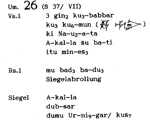 | Transliteration of text | 1988 | Yildiz, F., Waetzoldt, H., Renner, H. ( MVN 14 0026 ) | | Revision of text | 2001 | Maaijer, R. de / Jagersma, B. ( CDLI ) | | Revision of text | 2001→ | Molina, M. ( BDTNS ) |