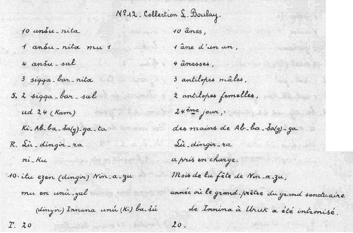 | Transliteration of text | 1920 | Boulay, L. ( TCUR 12 ) | | Revision of text | 2015 | Molina, M. ( BDTNS ) |